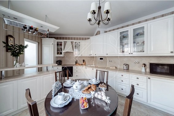 Для просторных кухонь подойдут кухни П-образной формы, модели с островом, полуостровом, практичной барной стойкой. Качественная белая мебель с глянцевыми фасадами прослужит долго, а интерьер при желании можно будет легко преобразить, добавив несколько ярких деталей декора.