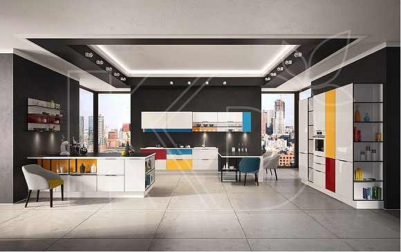 • Белые кухни делают помещение визуально более просторнорным, поскольку данный цвет обладает способностью зрительно расширять пространство. Особенно это актуально для небольших квартир. Эффект зрительного расширения пространства в белой кухне можно усилить при использовании глянцевых фасадов мебели. Хорошим выбором станут также современные белые гарнитуры, в которых сочетаются матовые и глянцевые поверхности. Например, нижние шкафы могут быть матовыми, а верхние ⎯ глянцевыми.