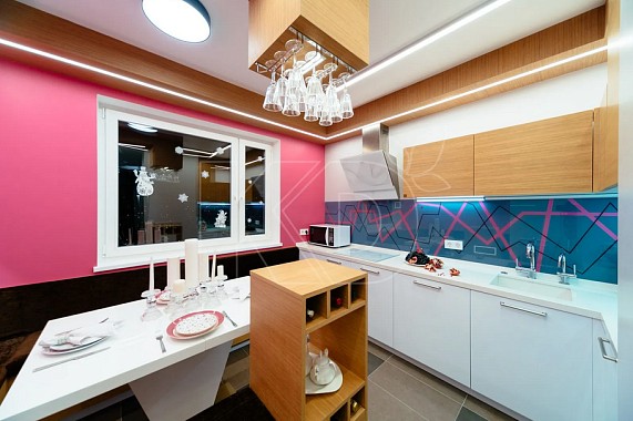 - Великолепная комбинаторность. Часто дизайн кухни в белом цвете настораживает потому, что не хочется в результате получить обезличенное пространство, ассоциирующееся с медицинскими учреждениями. Но для того, чтобы избежать подобного эффекта, достаточно ярких аксессуаров. Или же всегда можно выбрать белый гарнитур, в котором будут объединены несколько оттенков. Подобный подход удобен для тех, кто не хочет тратить лишнее время на уборку. Нижние модули в данном случае делаются более темными, а верхние, контактирующие с грязью меньше, светлыми.