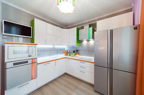 - Яркость. Белый цвет визуально расширяет пространство, он уместен как на просторных, так и на компактных кухнях. Такая мебель не затеряется в интерьере и будет привлекать к себе внимание.