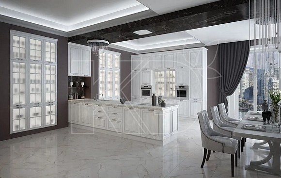 Белая классическая кухня в интерьере