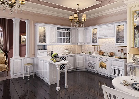 Белые классические кухни в ассортименте фабрики «Кухонный двор»