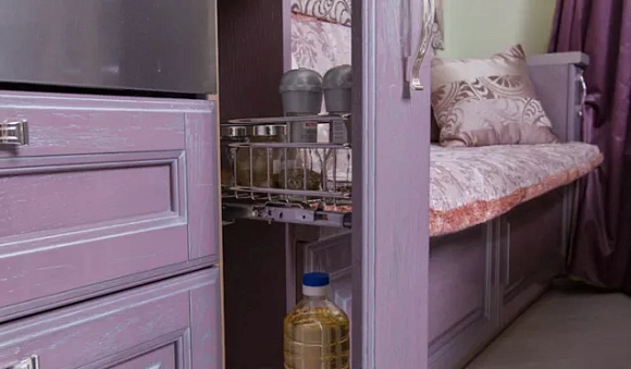 Дизайнеры настоятельно рекомендуют соблюдать пропорции и не перебарщивать лавандовыми тонами. Выходом из ситуации станет кухонный гарнитур фиолетового цвета с дополнительными светлыми тонами. К примеру, при желании можно приобрести красочные многочисленные аксессуары, чтобы украсить помещение точечно.