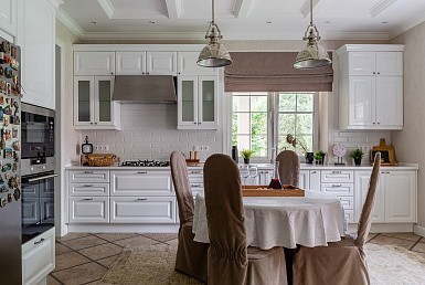 Конфигурация в виде буквы «П» – идеальное решение для обустройства рабочего треугольника. При этом между плитой, холодильником и мойкой соблюдается оптимальное расстояние, обеспечивающее комфортность и безопасность в процессе пользования.
