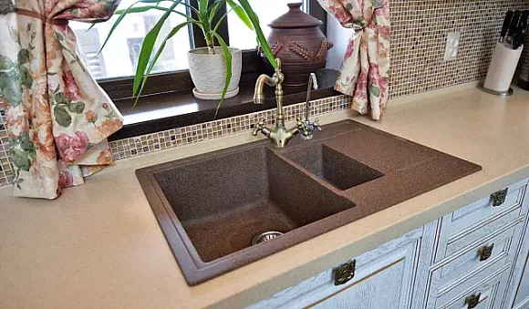 Кварцевая столешница выделяется такими достоинствами: