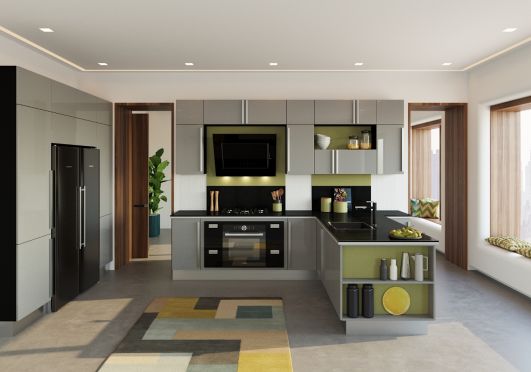 Для загородных домов и просторных помещений подходят п-образные кухни без ручек. В таких комплектах можно хранить большое количество посуды, кухонной утвари и аксессуаров.