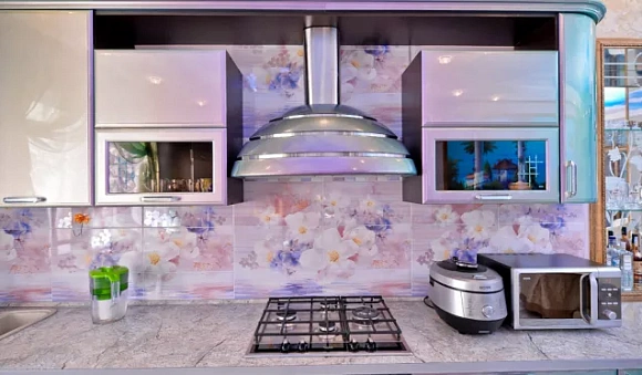 В том случае, если вы решили оформить кухню в фиолетовых тонах хамелеона, стоит обратить внимание на сиреневые и оранжевые оттенки в оформлении других элементов помещения. Некоторые детали должны быть светлыми. Например, подвесные потолки можно сделать ярко-белыми, добавить вытяжку или оформить ручки в светлых тонах. Также не рекомендуется оформлять пол и стены в темных тонах, так как это визуально сделает кухню менее просторной.