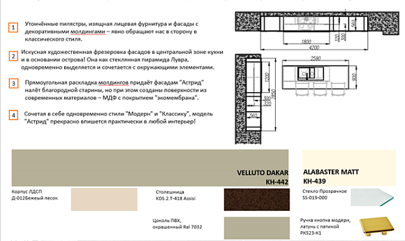 Наши кухни классик модерн «Астрид» отличаются и универсальным дизайном, это значит, что они актуальны, как для современной квартиры, так и для классического дома, и всегда будет выглядеть впечатляюще. Приглушенные цвета, приятная поверхность, гармоничная сочетаемость каждого объекта - это лишь малая часть всех преимуществ.