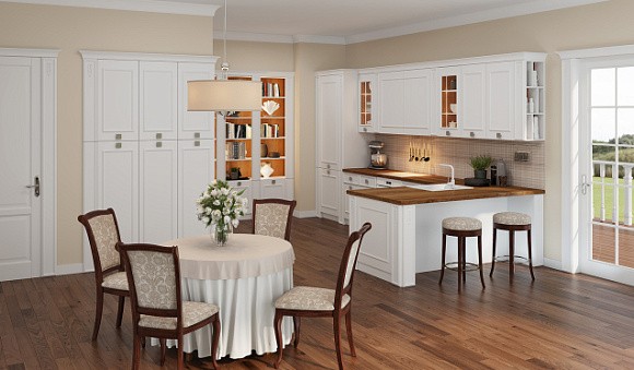Белые кухни актуальны всегда. Это универсальный цвет, позволяющий сделать кухню зрительно светлее и чище. Белый хорошо сочетается с черным, оранжевым, коричневым, золотым и красным.