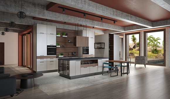 Необязательно придерживаться всех правил для обустройства кухни в стиле лофт. Вы можете выполнить гарнитур по индивидуальному эскизу. В этом вам поможет бренд «Кухонный Двор», которая на протяжении долгих лет занимается изготовлением многофункциональных кухонь.