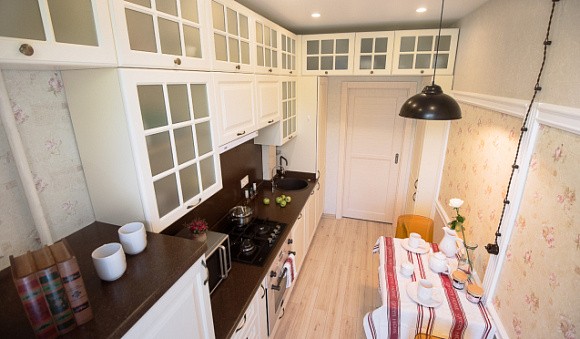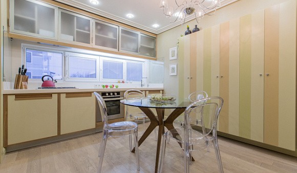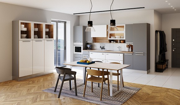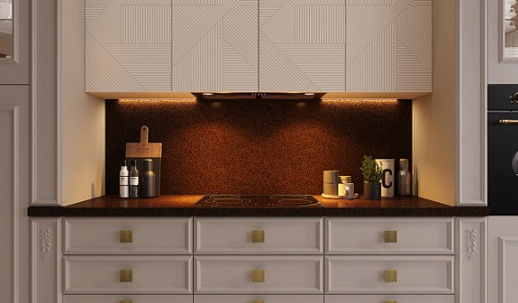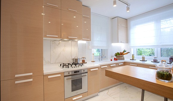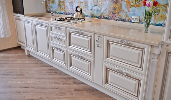 Используемые материалы в кухонном гарнитуре светлого цвета