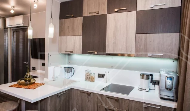 Двухлинейные. Такой вариант прекрасно вписывается в маленькие вытянутые кухни. Гарнитур размещается вдоль параллельно стоящих стен.