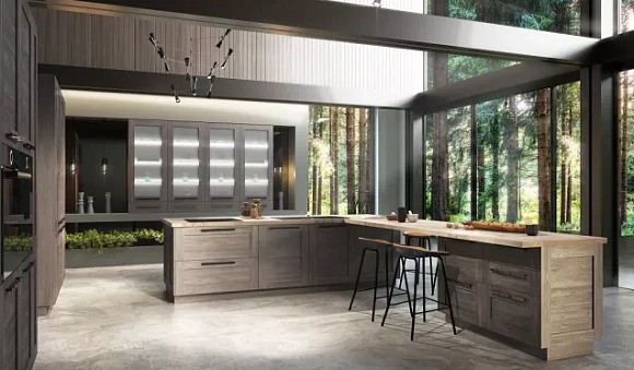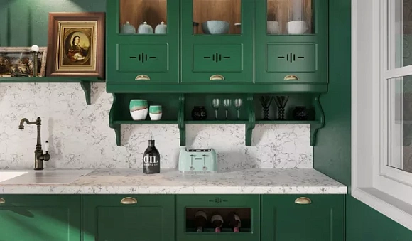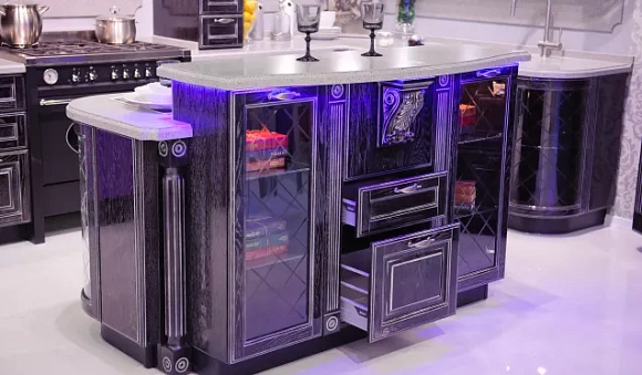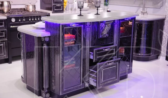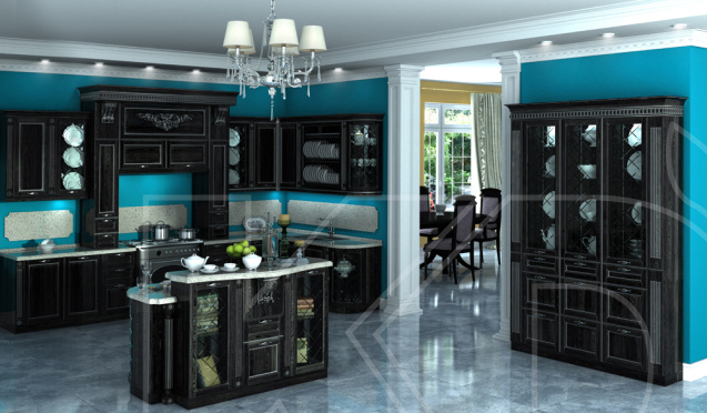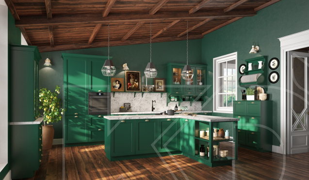 классика – цветовая палитра темных цветов такой кухни будет представлена глубокими изумрудными, коричневыми и черными оттенками;