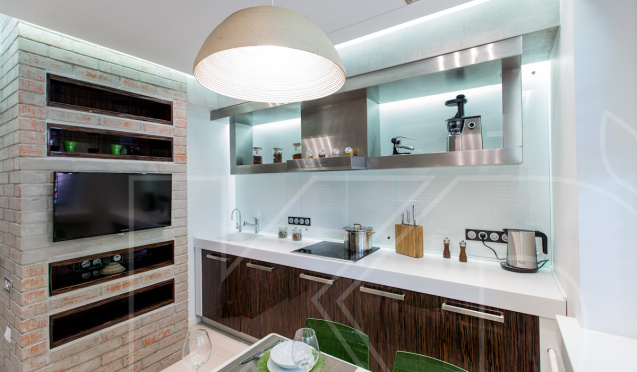 К достоинствам кухни в темных тонах можно смело отнести следующие качества: