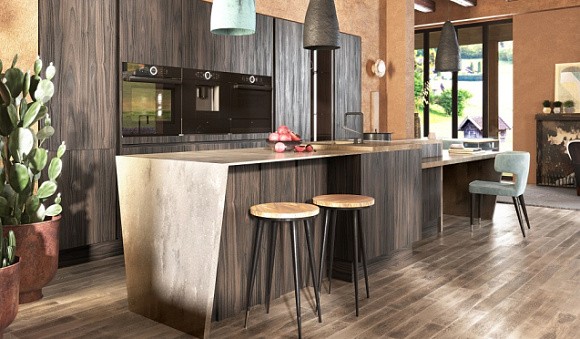 Кухни модерн – это гармония и функциональность. Всё пространство максимально задействуется: для этого выбирают удобную мебель с множеством функций. Часто в таких кухнях можно увидеть комнатные растения. В основном, дизайн довольно строгий, но можно поиграть с сочетанием оттенков.