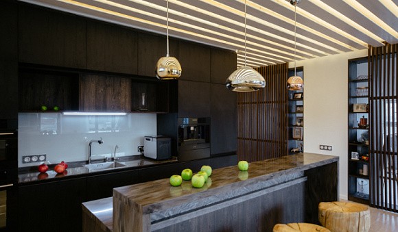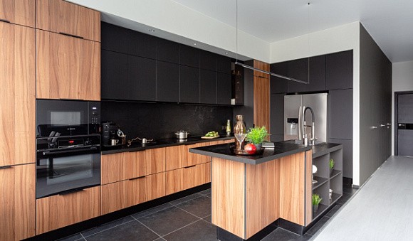 С черным цветом можно сочетать контрастные цвета, которые будут выбиваться из общего фона, делая кухню интереснее. Это могут быть яркие желтые, зеленые или оранжевые оттенки. Также можно добавить дерево.