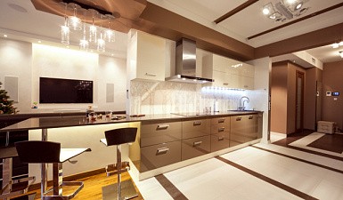 Встроив в комнату кухонный гарнитур, можно приступать к установке плиты, вытяжки, холодильника и других бытовых приборов. Также на этом этапе монтируются светильники над рабочей зоной. Не рекомендуется подключать электрооборудование самостоятельно, лучше доверить это специалисту, который обеспечит грамотный монтаж.