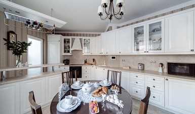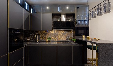 После завершения отделочных работ можно приступать к сборке и установке кухонной мебели. Выполнить это можно самостоятельно, но лучше всего обратиться к специалистам. Они быстро и правильно соберут комплект, интегрируют его в пространство, установят столешницу и мойку.