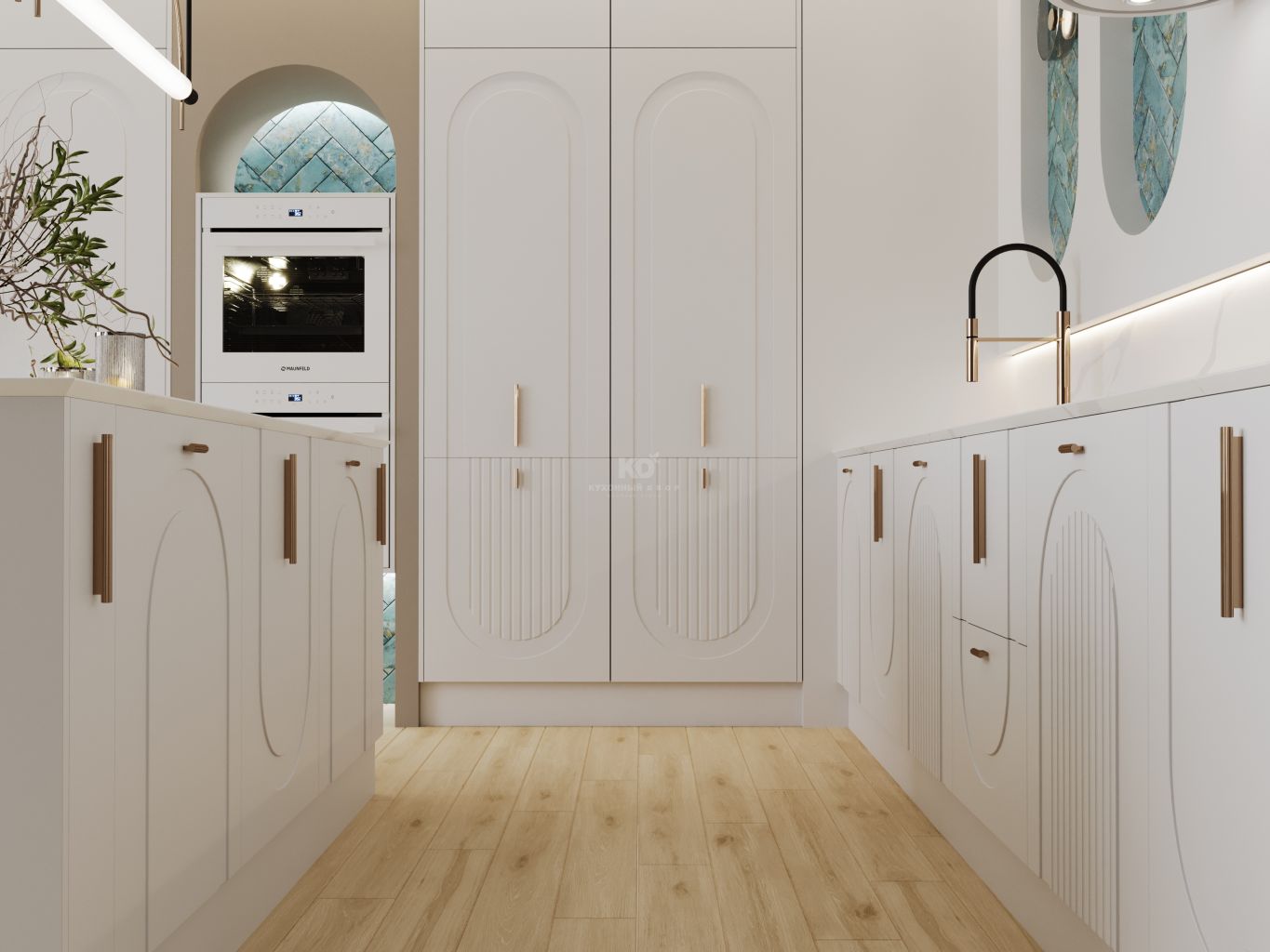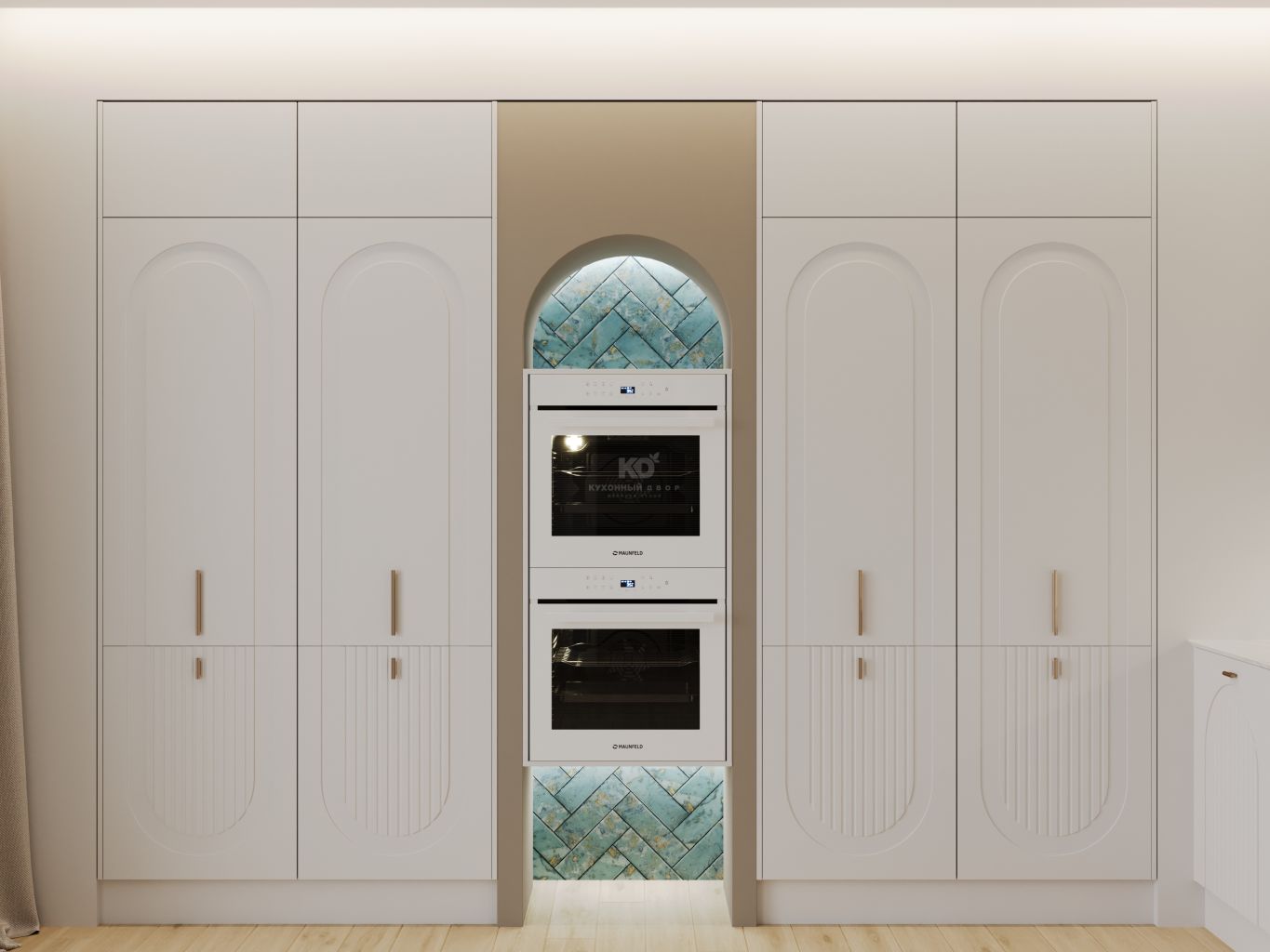 Главный штрих кухни Арко — арочная фрезеровка фасадов, отсылающая к величественным силуэтам античных арок и храмов Эллады. Она — не просто декор, а форма, в которой отзывается эхо времени и магия легенд. Такая кухня не просто часть интерьера, она — полотно смыслов, отражающее индивидуальность хозяина. Пространство, где хозяин становится героем своего собственного мифа.